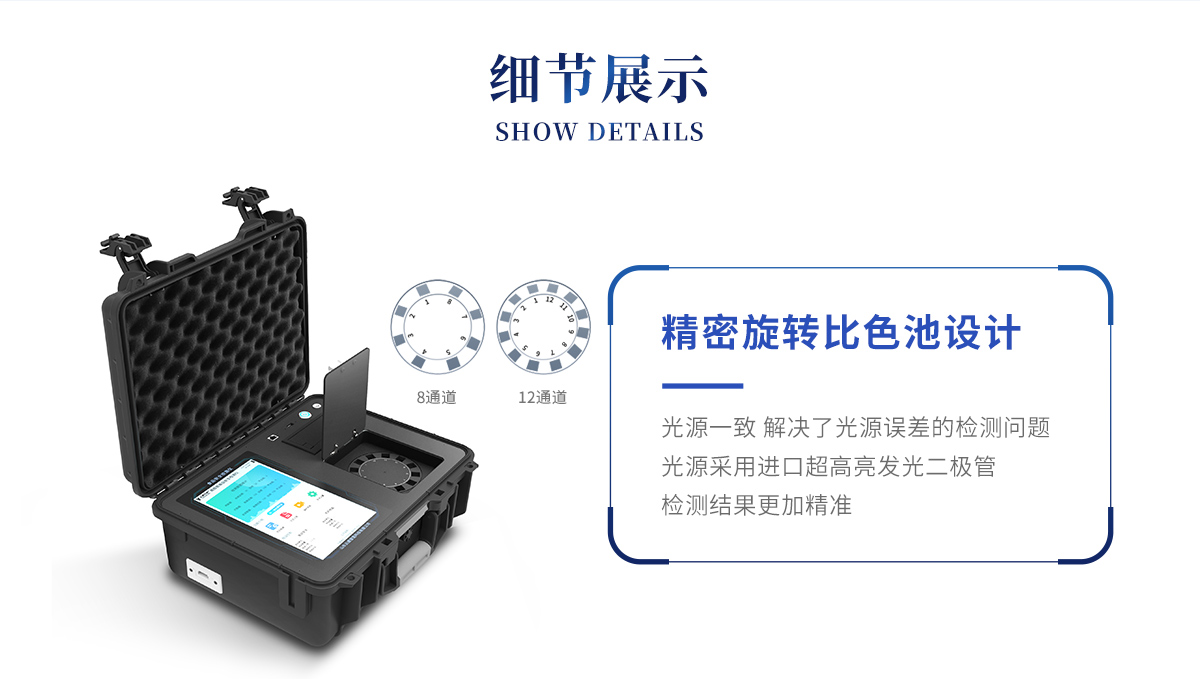 *①儀器采用精密旋轉(zhuǎn)比色池設計,使用光源一致,可以解決各通道間由于光源誤差帶來的檢測結(jié)果誤差問題,檢測結(jié)果更加精準,1-12通道間誤差千分之一。