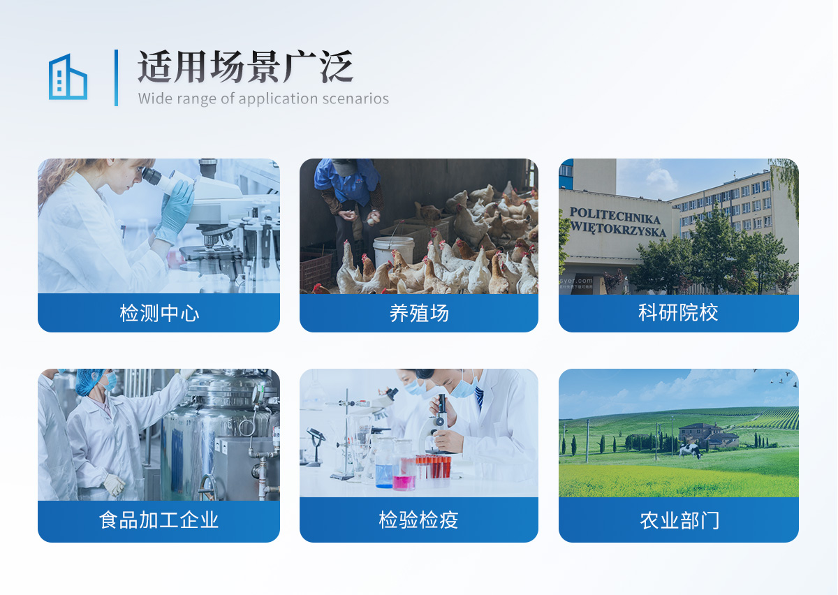 該瘦肉精檢測儀為集成化食品安全快速檢測分析設(shè)備,目前已于食藥監(jiān)局、衛(wèi)生部門、高教院校、科研院所、農(nóng)業(yè)部門、養(yǎng)殖場、屠宰場、食品肉產(chǎn)品深加工企業(yè)及檢驗(yàn)檢疫部門等單位廣泛使用。