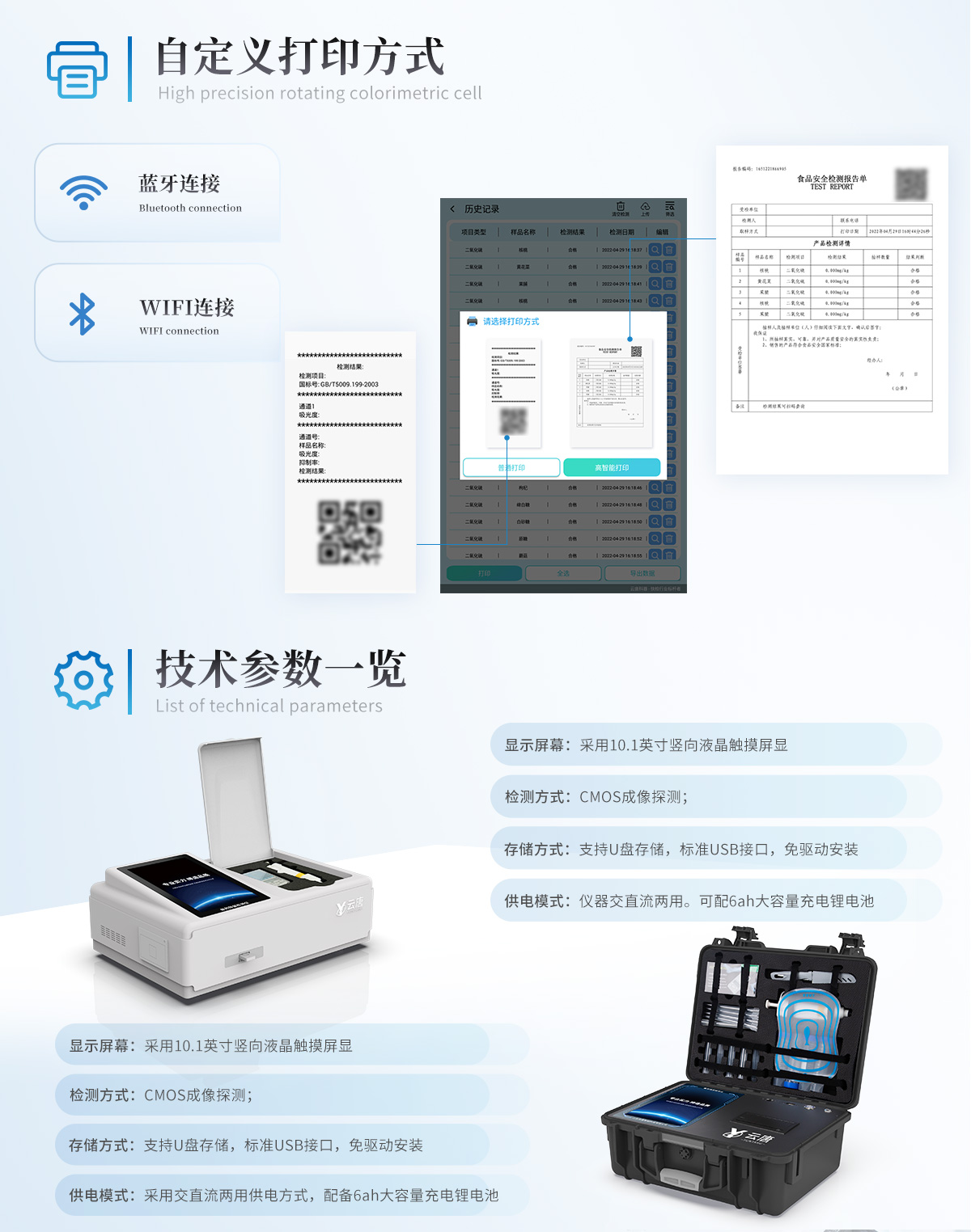10、儀器具有 wifi 聯(lián)網上傳、RJ45網線連接功能,可以快速上傳數據。同步對接監(jiān)管平臺,數據可局域網和互聯(lián)網數據上傳,檢測結果直接傳至食品安全監(jiān)管平臺。進行區(qū)域食品安全監(jiān)管及大數據分析處理與數據統(tǒng)計,檢測區(qū)域食品安全長短期動態(tài),達到食品安全問題預估、預警。